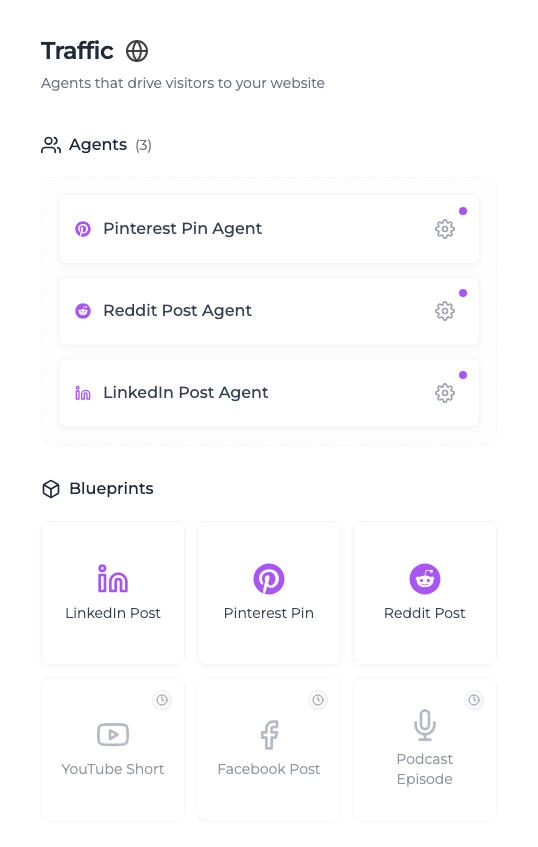 Watch your traffic Agents in action and start building your business automatically. So you can focus on why you started your business in the first place. This is marketing, the way it was always meant to be.